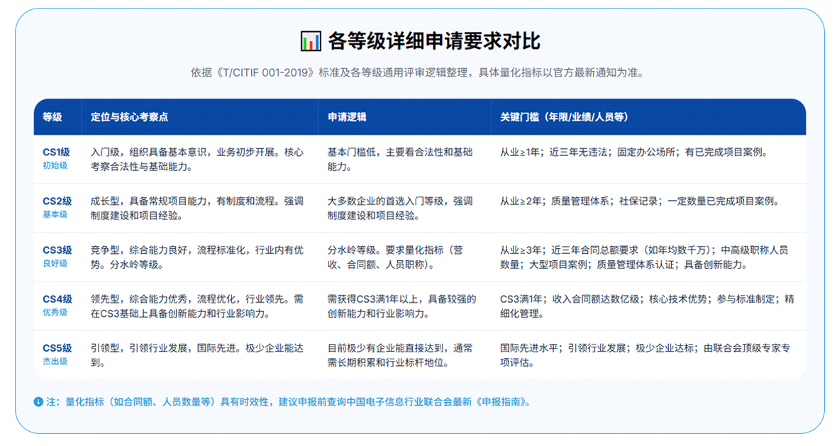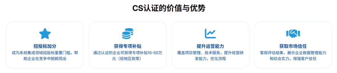 CS信息系统建设和服务能力等级认证(简称CS认证)是我国在信息系统建设和服务领域推出的首个团体标准(标准代号:T/CITIF 001-2019)评估体系。
